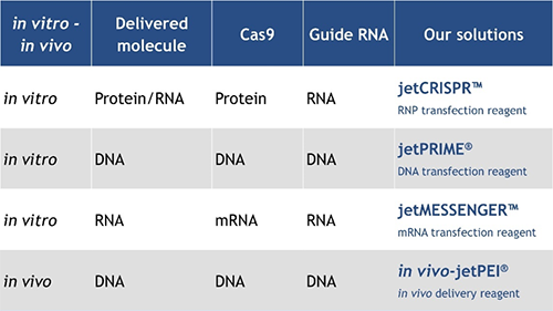 表1:專(zhuān)為CRISPR實(shí)驗(yàn)設(shè)計(jì)的轉(zhuǎn)染試劑