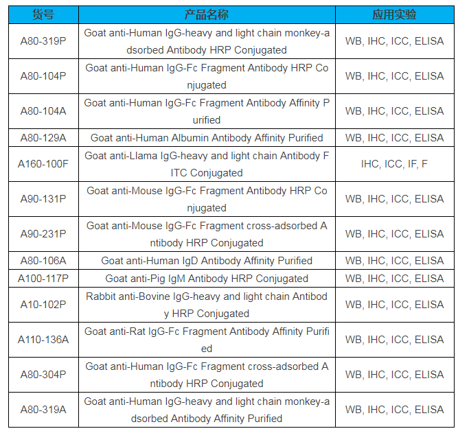 Bethyl 二抗熱賣(mài)產(chǎn)品列表