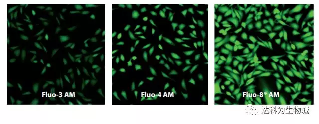 Fluo-3和Fluo-4是常用的可見光激發(fā)的Ca2+指示劑,然而Fluo-3AM和Fluo-4 在體內(nèi)結(jié)合鈣離子后的熒光強(qiáng)度不高,需要比較苛刻的loading condition來加強(qiáng)熒光強(qiáng)度。AAT Bioquest?Fluo-8改善了二者的loading condition和熒光強(qiáng)度問題,比如Fluo-8只需要在室溫孵育,而Fluo-3和Fluo-4需要37度水浴,另外Fluo-8的熒光強(qiáng)度是Fluo-4的兩倍,是Fluo-3的4倍,另外Fluo-8依舊保持Fluo-3和Fluo-4的通道。