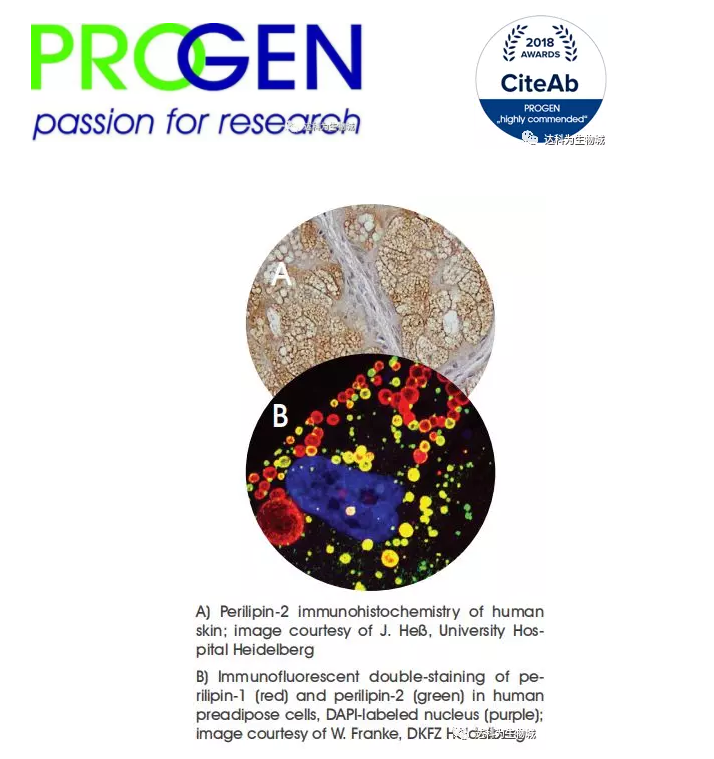 脂代謝與各種疾病的關系還需要需要更多的研究數據,可靠的抗體是可靠結果的有力保證。Progen,德國品質,始于1983,是目前可提供較全PLIN1-5抗體以及發(fā)表文章較多的生產商,榮獲2018年CiteAb頒發(fā)的highly commended awards 。