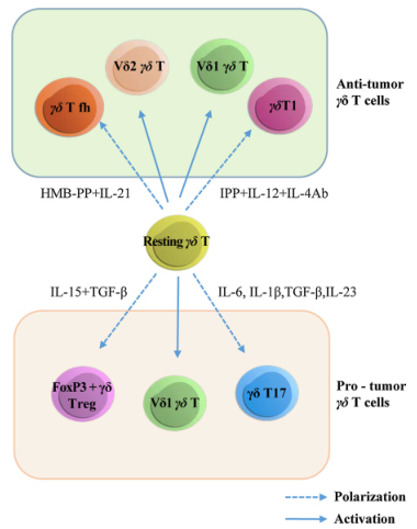 Human:通常,人的γδT細胞根據(jù)其TCR基因重排過程中TCR δ鏈的不同主要分為兩大亞群:Vδ1T細胞亞群和Vδ2T細胞亞群,其中,與Vδ1T細胞對應(yīng)的TCRγ鏈主要為VγI基因家族成員(Vγ2/3/4/5/8),主要分布于黏膜和皮下組織中,在不同的組織中數(shù)量不等;Vδ2 T 細胞是γδ T 細胞的主要細胞群,其TCRγ鏈主要為VγII基因家族成員(Vγ9),因此又叫 Vγ9Vδ2T 細胞,僅存在于靈長類動物和人體內(nèi),主要分布于外周血中,占外周血淋巴細胞的0.5% ~10%。