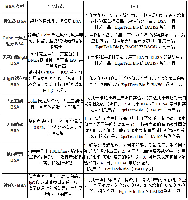 牛血清白蛋白Albumin from bovine serum,BSA,又稱為組分V或Cohn V,名稱起源于BSA的分餾法——Cohn 冷乙醇法, Cohn 冷乙醇法是由哈佛大學Edwin Cohn教授于1946年發(fā)明的。當時基于戰(zhàn)爭創(chuàng)傷治療對注射級別蛋白的大規(guī)模需求,Cohn教授在較低的溫度下改變血漿的乙醇濃度和pH值,使其所含蛋白在不同乙醇濃度下析出,在第五個析出的組分中主要成分為BSA,所以BSA又稱組分V或Cohn V。Cohn法仍然是目前非常普遍的BSA分餾法。 美國大的生物原材料供應(yīng)商Equitech-Bio提供經(jīng)典冷乙醇法和先進的熱休克法純化的高質(zhì)量、分類齊全的BSA,助力您的實驗!